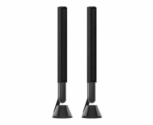 Den øverste og den nederste del holdes sammen af en skinne, der også skjuler kablerne. Skinnen er den eneste forskel mellem væg- og gulvversionen. Det er derfor nemt og enkelt at ændre højttalerens position fra gulv til væg eller fra væg til gulv, blot ved at købe en ny skinne.